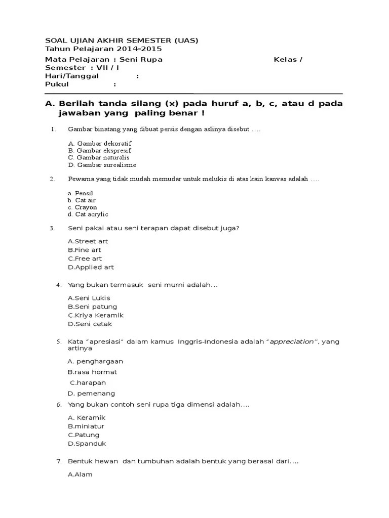 Soal seni budaya smp mts kelas 7 tentang menggambar flora, fauna, dan alam benda beserta kunci jawaban/ pembahasan soal. Sahabat pendidikan, pada kesempatan kali . Soal pas mapel seni budaya. Video pembelajaran seni budaya kelas vii seni rupa kurikulum 2013 revisi 2017 kegiatan. Fauna dan alam benda b.